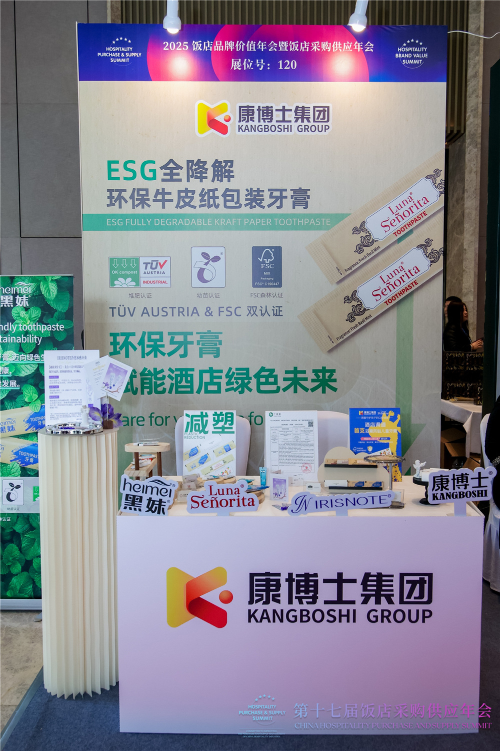 为响应酒店集团对 ESG的更高要求,康博士集团重点推出两大环保型酒店牙膏解决方案,以可降解包装、环保材料及绿色生产理念,为酒店打造更可持续的宾客体验。